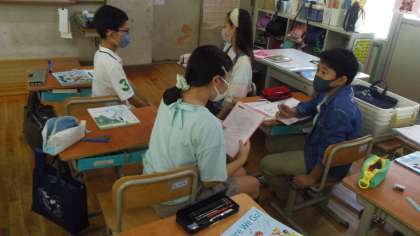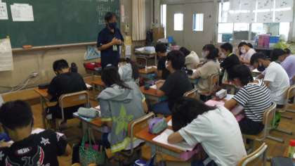 Unit4の4時間目の学習をしました。今までに夏休みに行った所,したことについて学習してきています。今日はしたことの感想のたずね方と言い方について学習しました。電子教材を使ってリスニングをしました。そのあとで西院中英語科の先生の夏休みに行った所,したこと,その感想を聞いて内容をメモしました。授業の最後にはペアトークで感想を伝え合いました。