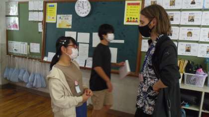 ぺアトークではALTの先生に積極的に伝え合っている子どもがいました。