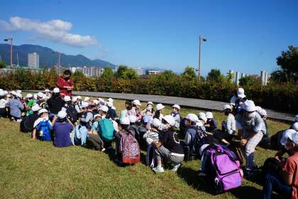 琵琶湖と青い空がとてもきれいで,楽しそうな子どもたちでした。