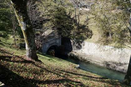 第一トンネルを発見しました!琵琶湖疏水は,4年8カ月もの時間をかけて,人の力で掘り進めてできたトンネルです。水は,トンネルを通っていきますが,私たちは琵琶湖疏水が通っている上を歩いていきます。