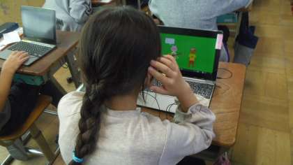 デジタル教科書の使い方に慣れてきて,チャンツに合わせて声を出して練習している子どもがいます。めあてを意識して学習している子どもが増えてきています。