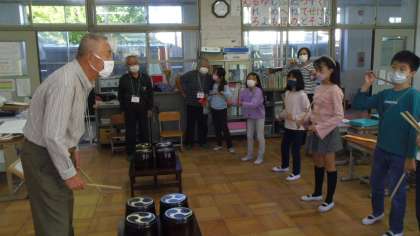 今日も地域の六斎念仏保存会の方にお越しいただいて練習しました。