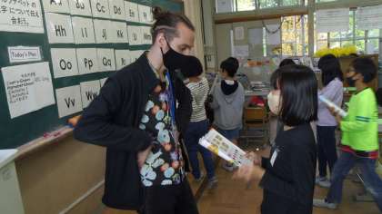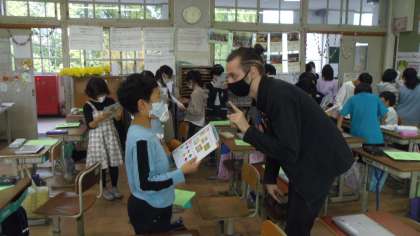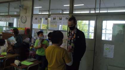 ALTの先生に進んでクイズを出し合う子どもがどのクラスにもいました。進んで英語を使おうとする子どもたちがたくさんいました。