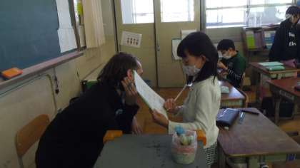 授業が終わるとALTの先生にできるかどうかをインタビューをしている子どもがいました。