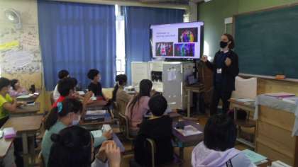 今日はALTの先生と一緒に学習しました。今日はハロウィンクイズをしました。はじめにアメリカのハロウィンの様子について話を聞きました。次にハロウィンに関するクイズをしました。