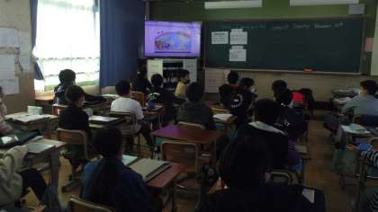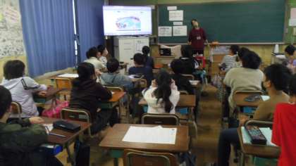 今日からUnit6 I want to go to Italy.の学習に入りました。はじめにUnit6の歌it's a Small Worldを歌いました。次のスモールトークでは5年の担任の先生が行きたい国クイズをしました。