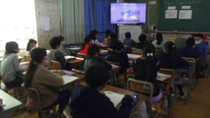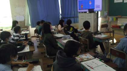 今日は行きたい国とそこでできる事の言い方を知りました。はじめに自作教材を使ってアメリカやインドでできる事の言い方を知りました。次に教科書の電子教材で言い方に慣れ親しみました。