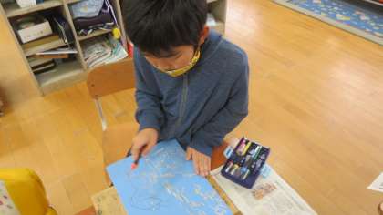 15日(火)、矢車学級では図画工作の学習で「版画」に取り組みました。