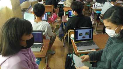 授業の後半には行きたい国でできる事をペアトークで伝え合いました。ジェスチャーを入れたり,相手の言葉にリアクションをしたりして相手を意識して伝え合いました。