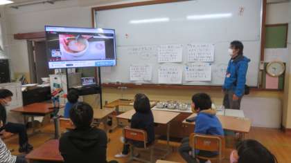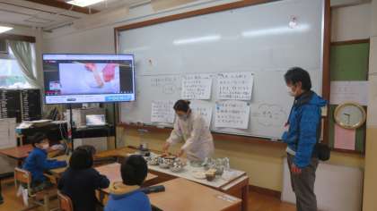 11月30日(水)、矢車学級では「きなこをつくろう」の学習を行いました。最初に作り方の動画を見ました。