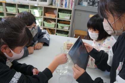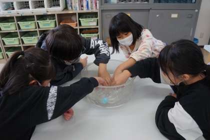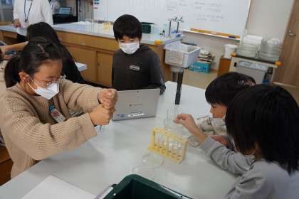 子どもたちは,理科室での実験は初めてなので,とても楽しそうに学習に取り組んでいました。