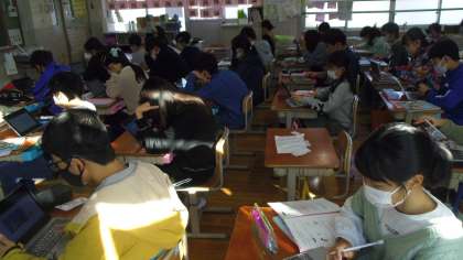Unit7の3時間目の学習をしました。はじめに歌を歌いました。次に各自のギガ端末で単語・表現に慣れ親しみました。