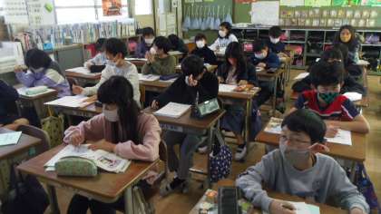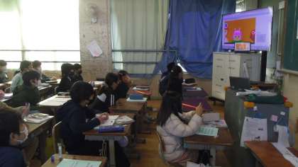 Unit7の2時間目の学習をしました。はじめに歌を歌いました。次に教科書の電子教材でリスニングとチャンツをして表現に慣れ親しみました。最後にペアで注文をしたり,注文を聞いたりしました。