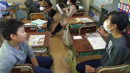 ペアトークではWhat would you like? I'd like 〇〇.の表現を使って店員役とお客役になって注文をし合いました。