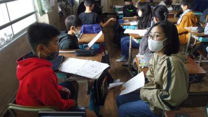 今日も歌から授業が始まりました。次に各自のGIGA端末を使って表現に慣れ親しみました。GIGA端末を使っての学習の進め方にも多くの子どもたちが慣れてきているようです。最後にはグループでペアトークをして注文をし合いました。