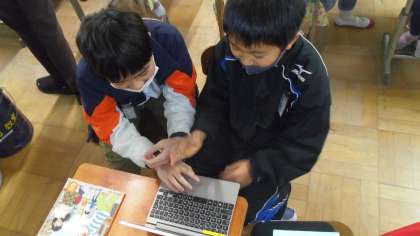 授業の最後にはぺアトークをしました。ギガ端末を使ってスーパーマーケット内の道案内をしました。