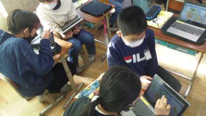 授業の後半はグループで「どこにあるかクイズ」をしました。ロイロノートを使って鉛筆やボールのカードを隠しました。そしてどこにあるかを英語でたずね合いました。