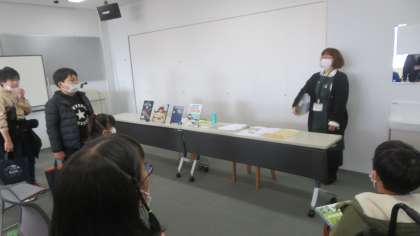 お話を聞いた後、先生たちと一緒に図書館をまわり、自分の読みたい本・借りたい本を探しました。