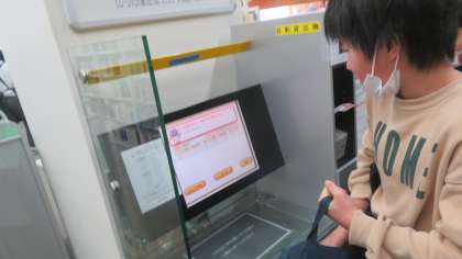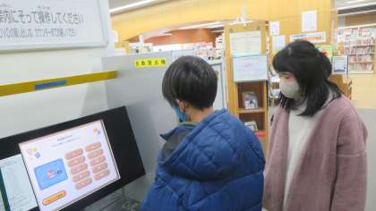 自動貸し出し機で貸し出しをするチームと、窓口で貸し出しをしてもらうチームに分かれて貸し出しを行いました。