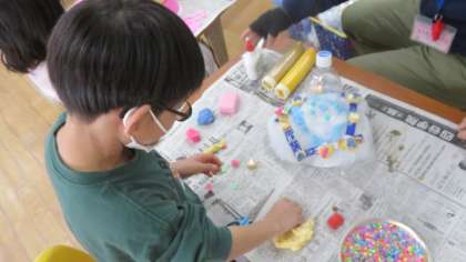 今回は紙粘土も使いながら作品作りを進めていきました。作れば作るほど、子どもたちは発想がわいてくるようで、