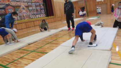 13日(月)、矢車学級では体育「マット運動」を行いました。