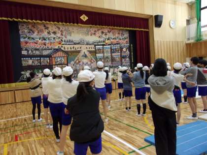 新しい校舎の体育館(アリーナ)での体育が始まりました。