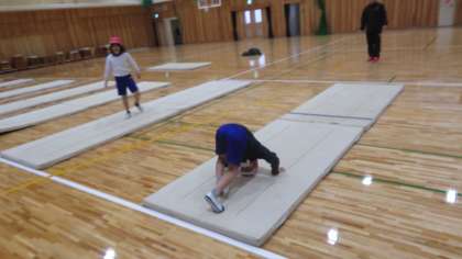 今回は、前転や後転にもチャレンジしました。どんどんできる動きを増やしていってほしいと思います。