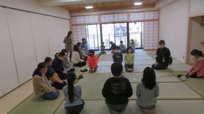 お菓子を食べるときの作法、お茶を入れるときの作法、お茶を飲むときの作法など、様々な作法について教えてもらいました。茶道部の子どもたちがいれてくれるお茶はとてもおいしく、それだけでなくおもてなしの心がとても伝わってきました。茶道部の皆さん、3回にわたって、お招きいただきありがとうございました。