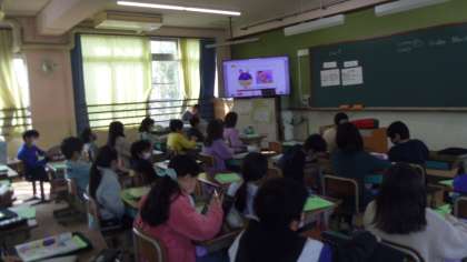 Unit9の4時間目の学習をしました。はじめにチャンツを言いました。チャンツに慣れてきている子どもが多く,大きな声でリズムに乗ってチャンツを言っていました。
