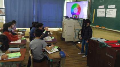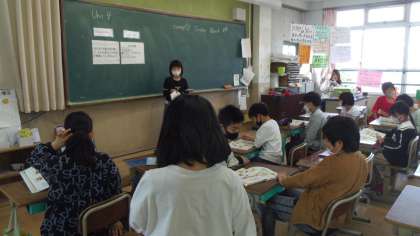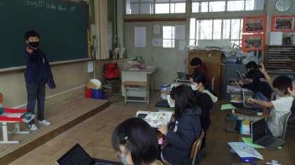 授業の最後には代表の子どもが前にでてクイズ形式でお気に入りの場面の紹介をしました。ジェスチャーを使ってヒントを出している人もいました。