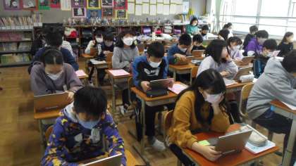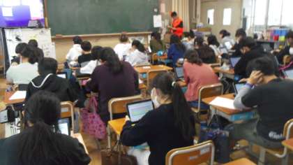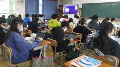 3学期のリスニングチャレンジを行いました。流れてくる英語の音声を聞いて,コンピュータで回答をしました。