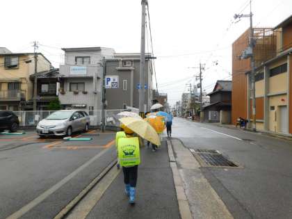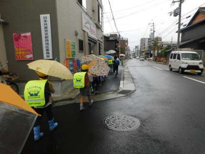 あいにくの雨模様でしたが、子どもたちは傘の差し方に気を付けながら下校することができました。