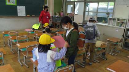 町別リーダーの子どもたちは今日も1年生を教室まで連れてきてくれました。教室ではランドセルの片づけを手伝ってくれている人もいました。