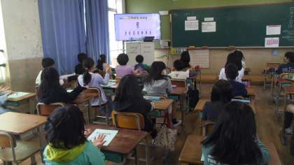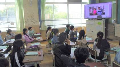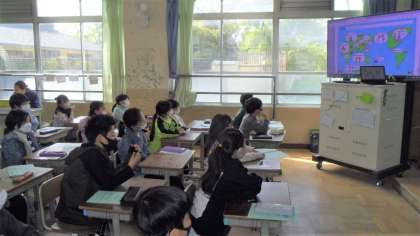 今日から4年生の学国語活動の業が始まりました。Unit1では世界のいろいろな国のあいさつについて学習します。今日は電子教材を視聴していろいろな国のあいさつを知りました。