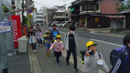 町別集会の後,集団下校をしました。各町ごとに集団で下校しました。地域委員の皆様も一緒に下校していただきました。地域委員の皆様には今年度もいろいろとお世話になります。よろしくおねがいします。