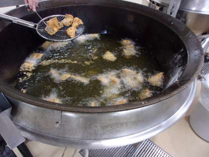 今日の給食は、ごはん・牛乳・さばのたつたあげ・野菜のきんぴら・すまし汁でした。さばのたつたあげは、しょうが・酒・しょうゆで下味をつけ、米粉・片くり粉をまぶして油で揚げました。すまし汁は、昆布とけずり節からじっくりと時間をかけてだしをとりました。