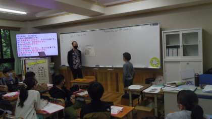 ペアトークの後で希望する子どもたちが前に出てALTの先生とペアトークをしました。みんなの前で緊張していましたが,しっかり言えていました。