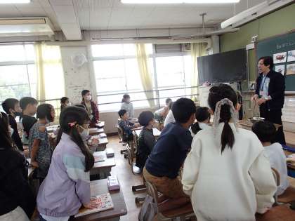 理科の授業では,水を使った実験を行いました。ボウルの中に水を入れ,そのボールをこすると水しぶきがあがるという実験をしました。子どもたちは,ボウルの縁をこするだけで水しぶきがあがることにとても驚き,目を輝かせていました。