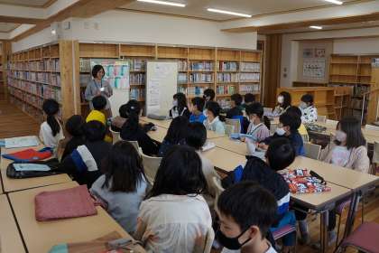 新しい図書館になって初めての図書室での学習でした。どこにどんな本があるのか,どのように分類されているのかを教えていただきました。