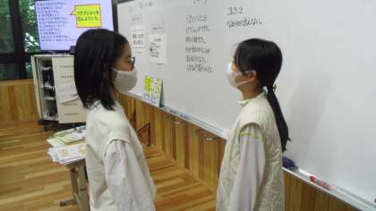 後半にはペアトークをしました。出身地,得意なことをたずねあいました。5年で学習した誕生日,あこがれの人も自己紹介に使えることを伝えるとそのことを伝え合っている人もいました。