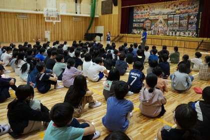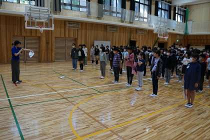 1年生を迎える会に向けて,学年で練習しています。代表委員会のメンバーは,休み時間もたくさん練習していました。その成果がしっかり出ましたね。