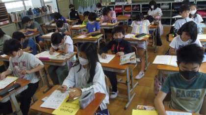歌の次はデジタル教科書を使って誕生日をたずねたり答えたりする表現に慣れ親しみました。声を出して表現に慣れ親しみました。