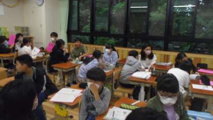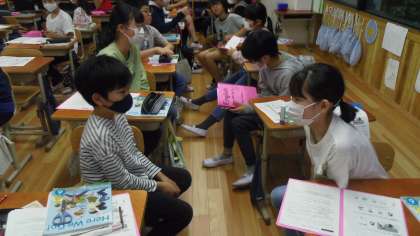 最後にはペアトークをしました。ペアで日本や京都の祭り,行事を伝え合いました。
