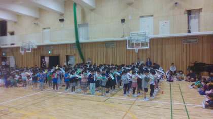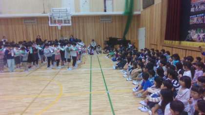 1年生を迎える会を行いました。2年生は1年生の時,音楽科の学習で取り組んだ「子犬のマーチ」の歌を1年生に向けてのメッセージに替え歌を歌い,その後鍵盤ハーモニカで演奏しました。一生懸命,1年生に入学おめでとうの気持ちを込めていました。家でもお話を聞いてみてください。