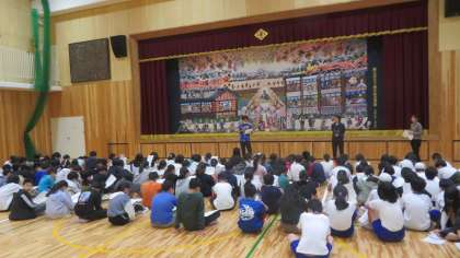 23日(火)、6年生はアリーナにてにこにこグループ活動について話を聞きました。6年生は最高学年として今年度もにこにこグループでの活動を引っ張っていきます。にこにこ遊びでは、6年生が主となり、1〜6年生で楽しい遊びをします。初回の活動に向けて、楽しい遊びを考えていってほしいと思います。