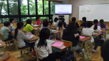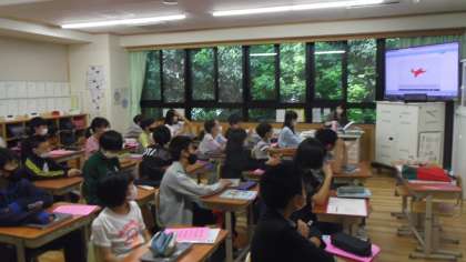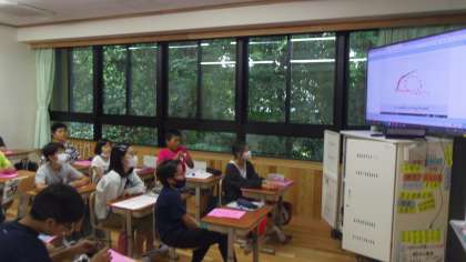 「日本や京都の行事とできることを紹介するポスターを書こう」をめあてとして学習しました。はじめはドレミでの歌を歌いました。7時間目で歌に慣れています。