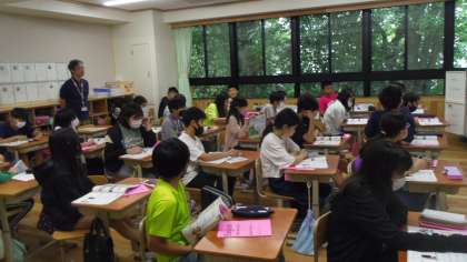 今日は西院中学校の英語科の先生が来校し,英語専科教員と一緒に6年生を指導しました。
