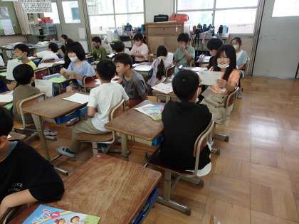 3年外国語活動「 How many? 」では、好きな漢字を紹介し合いました。子ども達は、漢字の画数を尋ねたり、質問に答えたりして楽しく活動を進めていました。