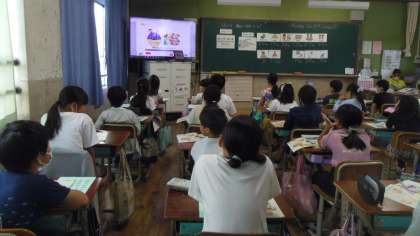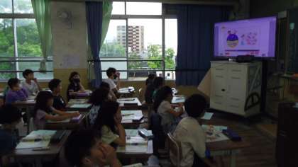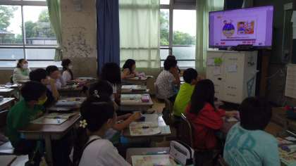 続いて教科書の電子教材を視聴して時刻の言い方に慣れ親しみました。