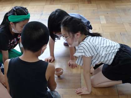 3年国語科「こまを楽しむ」の学習では、こまについての説明文を読み、文中の問いや答えを見つけました。子ども達は、実際にこまを回して楽しい様子で学習に取り組んでいます。